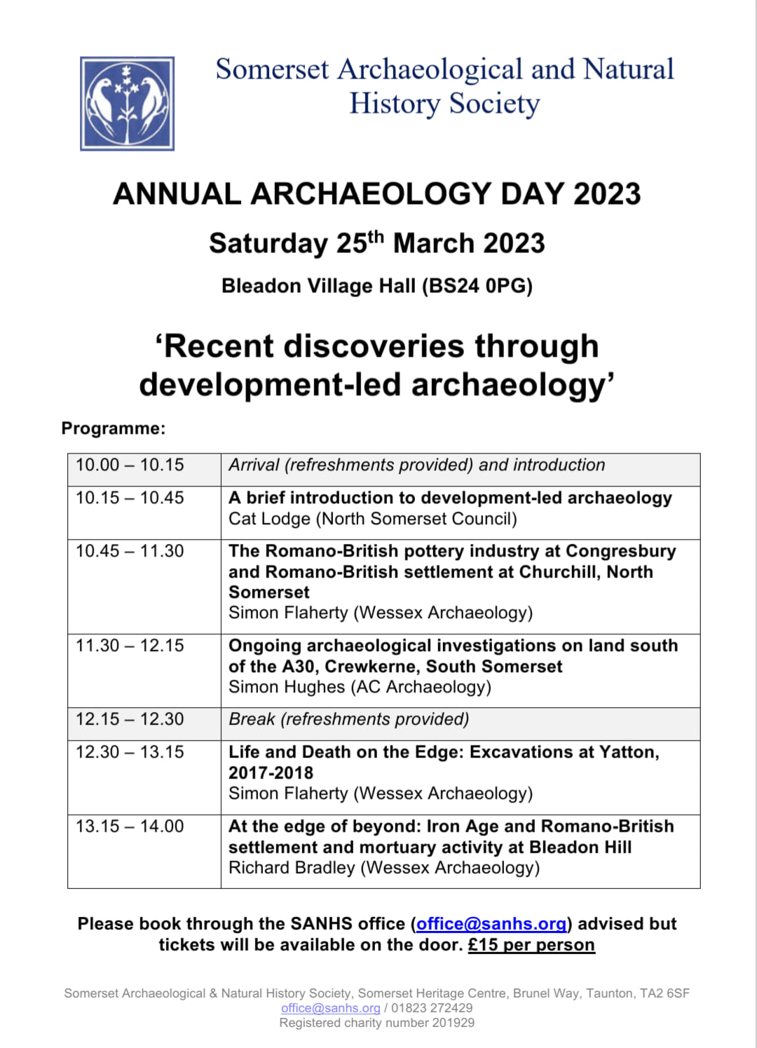 Booking through the SANHS office (office@sanhs.org) is advised but tickets will be available on the door. £15 per person. Refreshments will be available.