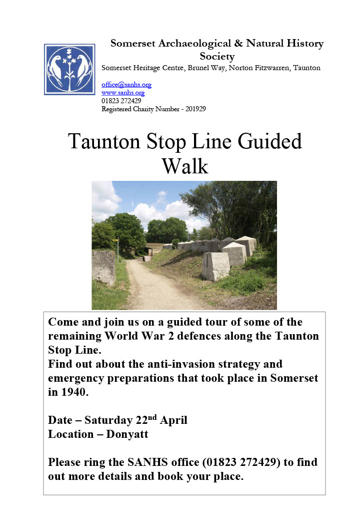 Evidence of this stop line still exists in parts of the Somerset Landscape. On Saturday 22 nd April, there will be a Somerset Archaeological and Natural History Society guided walk to investigate the remaining evidence of part of the Taunton stop line in the Donyatt area. If